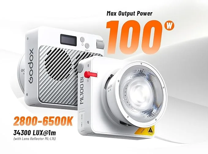 - 𝐋𝐞𝐧𝐬 𝐑𝐞𝐟𝐥𝐞𝐜𝐭𝐨𝐫 : the ML100 bi-reflector features a more compact size. Two lens (15° and 36°) allow for accurate, focused or scattered lighting to meet a variety of shooting requirements in any environment