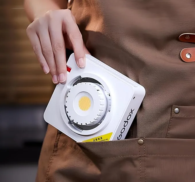 - 𝐋𝐢𝐠𝐡𝐭𝐰𝐞𝐢𝐠𝐡𝐭 𝐚𝐧𝐝 𝐩𝐨𝐫𝐭𝐚𝐛𝐥𝐞 : GODOX ML100Bi adopts a flat and slim design, with pocket size only 122 x 110 x 46 mm/4.8 x 4.3 x 1.8 inches. It weighs only 487 g, can be easily stored in the bag.