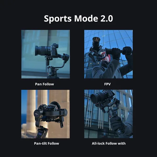 Four follow modes include pan follow, pan-tilt follow, FPV, and Sports Mode 2.0 that features all-lock follow with five adjustable speed control