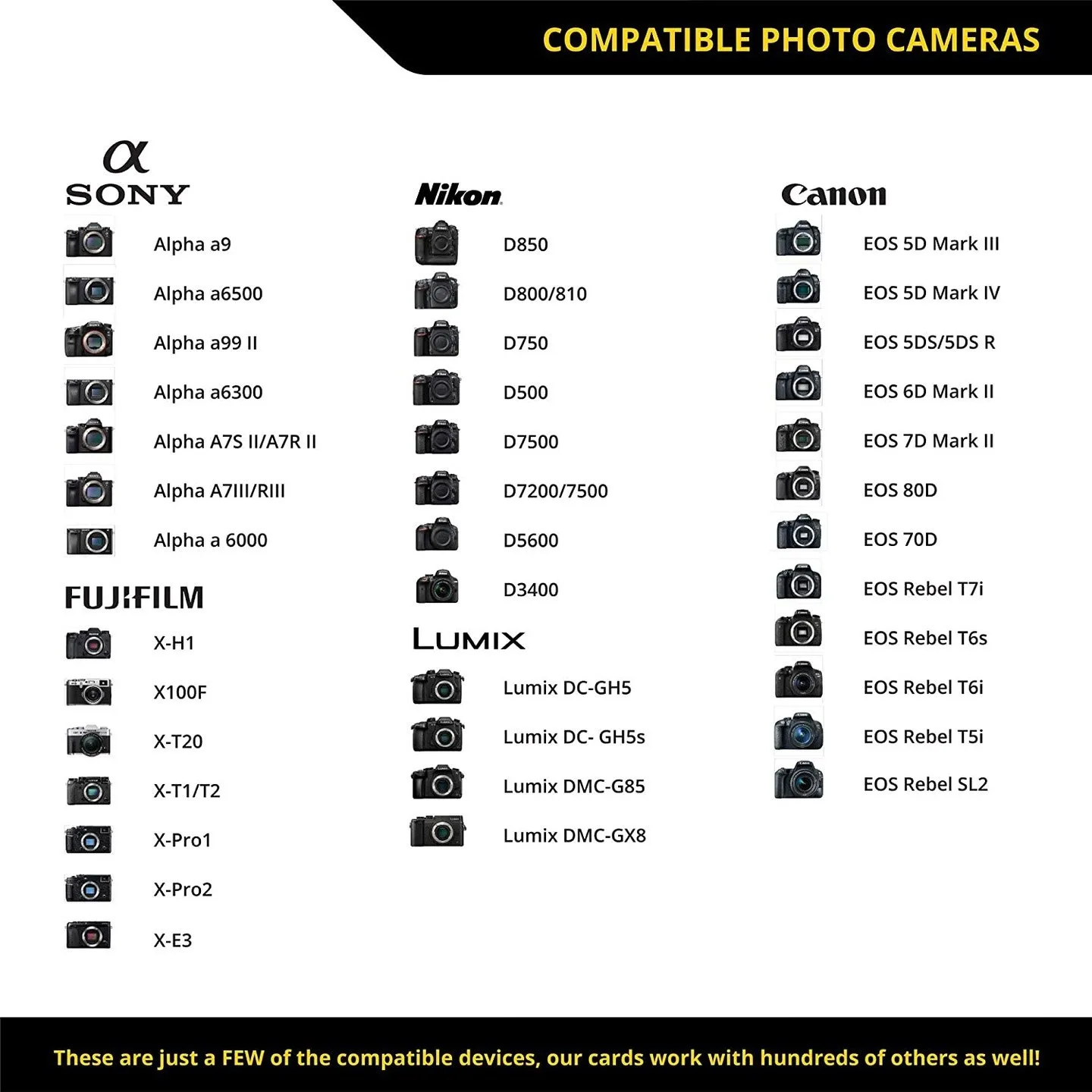The 128GB UHS-II SDXC Memory Card from ProGrade Digital features a storage capacity of 128GB and takes advantage of the UHS-II bus to support maximum read speeds of 250 MB/s and maximum write speeds of 130 MB/s. This card has also been designed with the V60 Video Speed Class rating, which guarantees minimum write speeds of at least 60 MB/s, allowing the card to be used in DSLRs, mirrorless cameras, camcorders, and digital cinema cameras to produce 4K, UHD 4K, 3D, Full HD, and high bit rate MPEG-4 video. It is also well suited for raw photos and rapid-fire bursts.